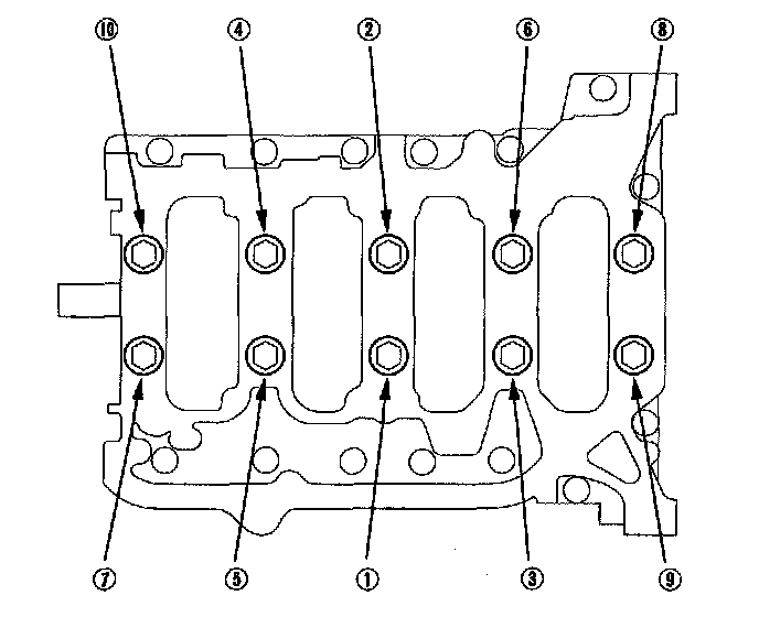 Torque the bolts in sequence to 29 Nm (3.0 kgf-m, 22 lbf-ft) + 56°