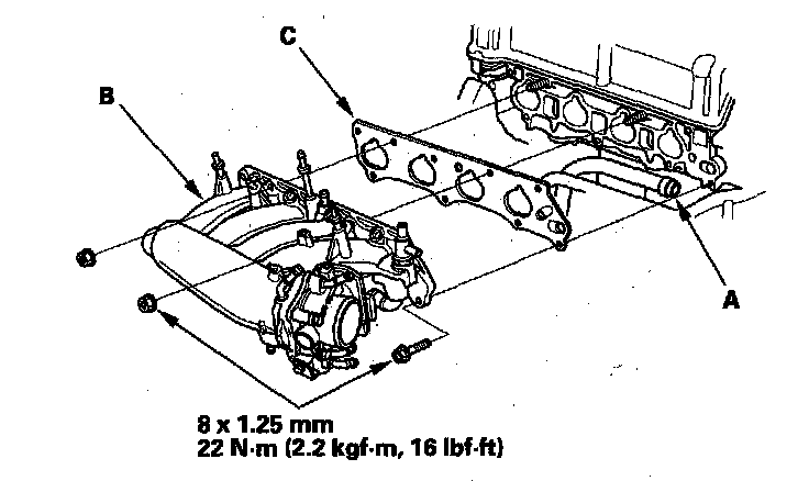 Torque the 8mm bolts in sequence to 22 Nm (2.2 kgf-m, 16 lbf-ft)