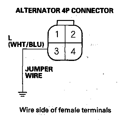 17. Connect alternator 4P connector terminal No. 3 and body ground with a jumper wire.