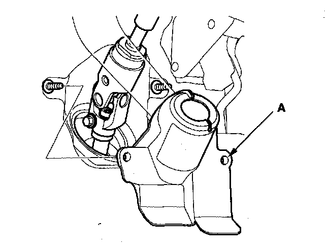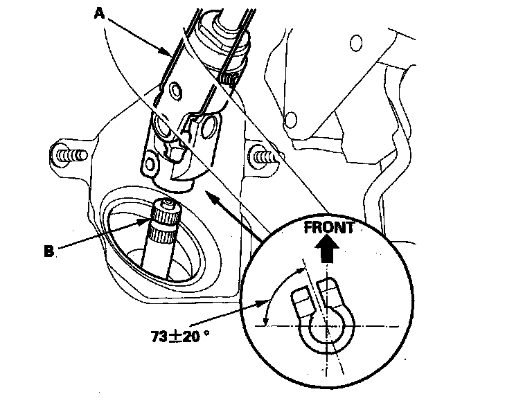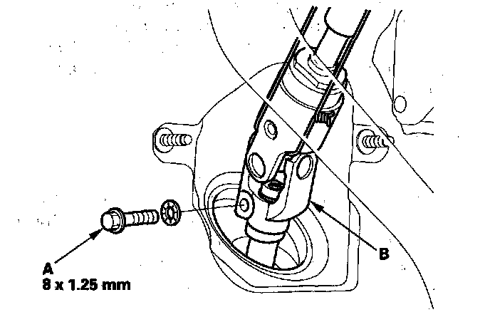 10. Remove the steering joint bolt (A), and disconnect the steering joint by moving the steering joint (B) toward the column.