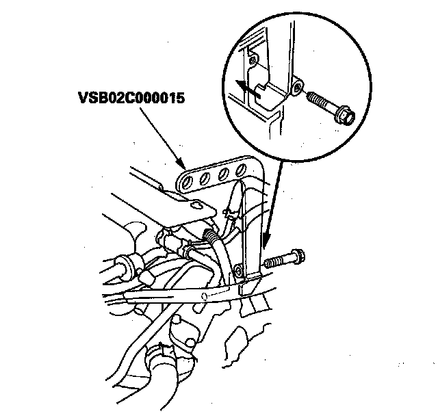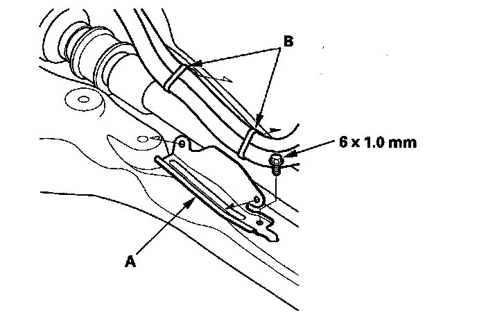 8. Install the harness clips (A) to the harness clamp bracket (B), then install the harness clamp bracket to the front subframe.