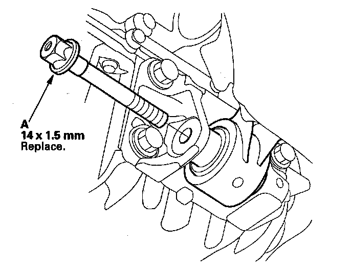 16. Install the new front subframe middle mount bolt (A) on the left side, and tighten it to the specified torque.