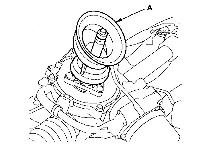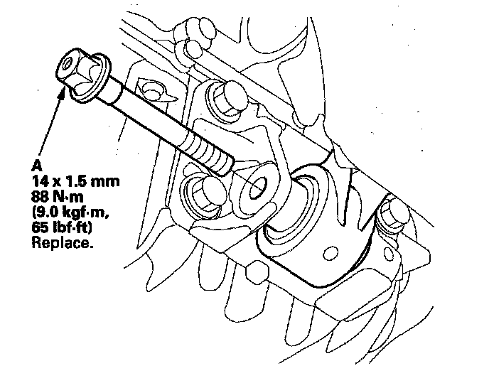 15. Install the new lower torque rod bracket bolt (A) and tighten it to the specified torque.