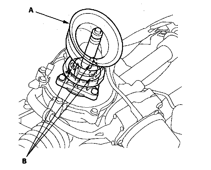6. Install the pinion shaft grommet (A). Align the slot in the pinion shaft grommet with the lug portion (B) on the torque sensor. The grommet must not have a gap at the mating surface of the grommet and the torque sensor.