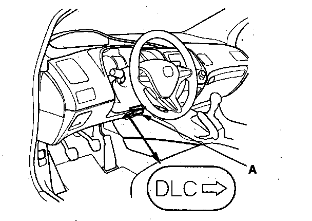 1. With the ignition switch at LOCK (0), connect the HDS to the data link connector (DLC) (A) located under the driver's side of the dashboard.