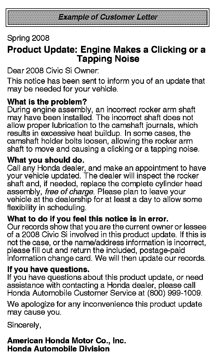 Example of Customer Letter