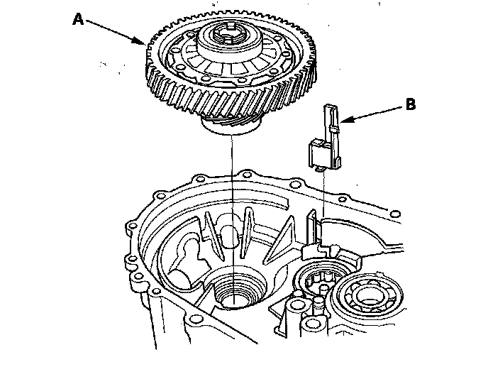 14. Remove the differential assembly (A) and the magnet (B).