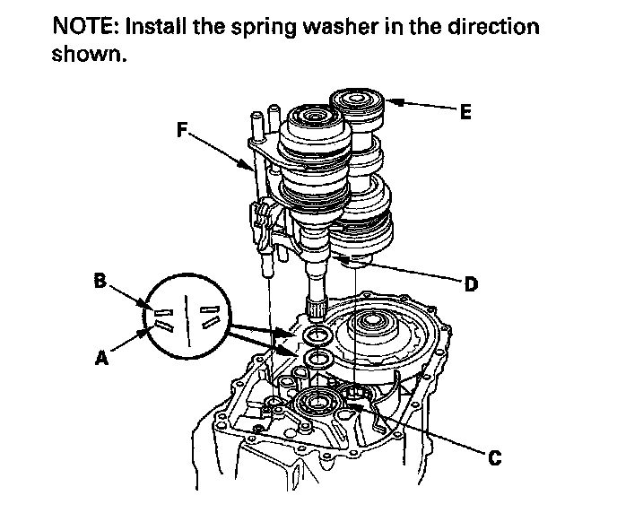 ^ Prior to reassembling, clean all the parts in solvent, dry them, and apply manual transmission fluid (MTF) to any contact surfaces.