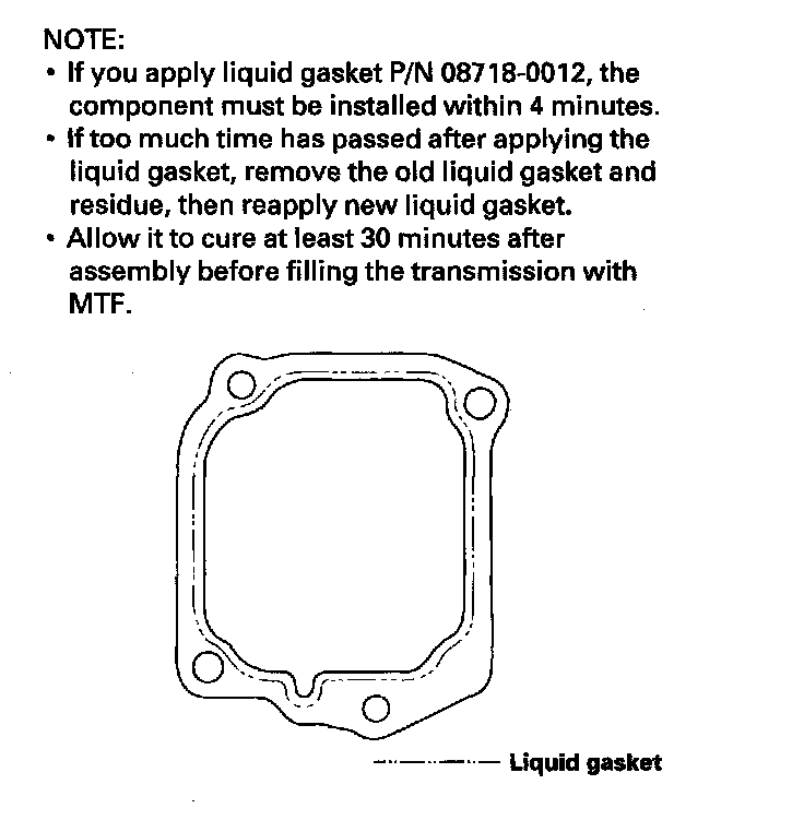^ If you apply liquid gasket P/N 08718-0012, the component must be installed within 4 minutes.