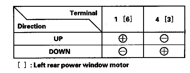 3. Test the motor by connecting battery power and ground according to the table. When the motor stops running, disconnect one lead immediately.