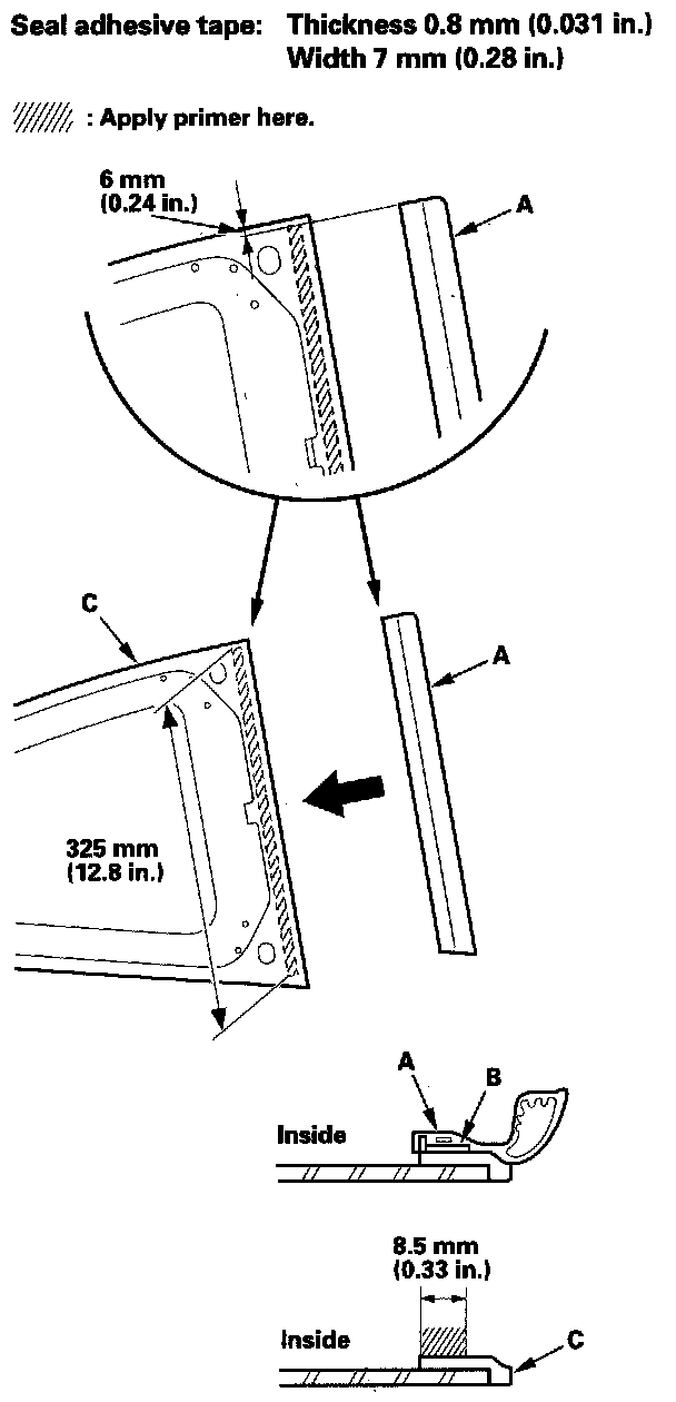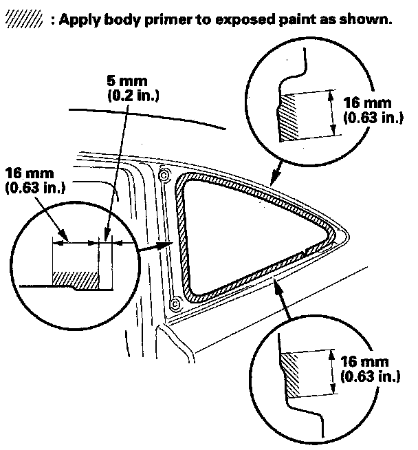 - Never touch the primed surfaces with your hands. If you do, the adhesive may not bond to the quarter glass properly, causing a leak after the quarter glass is installed.