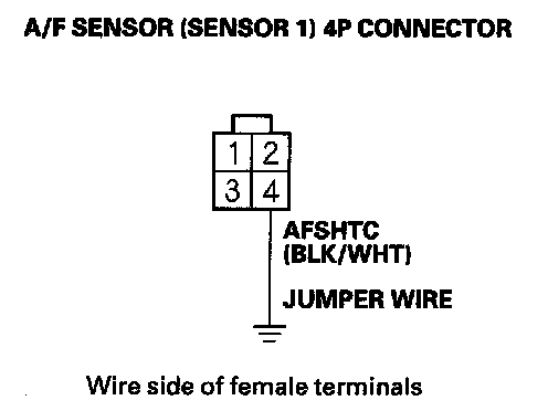 15. Connect A/F sensor (Sensor 1) 4P connector terminal No. 4 to body ground with a jumper wire.
