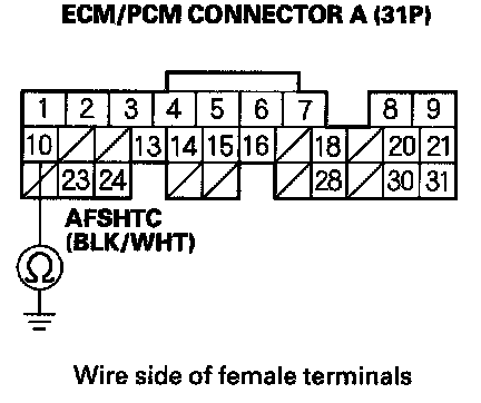 20. Check for continuity between ECM/PCM connector terminal E8 and A/F sensor relay 4P connector terminal No. 3.