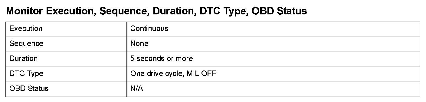 Monitor Execution Sequence, Duration, DTC Type, OBD Status