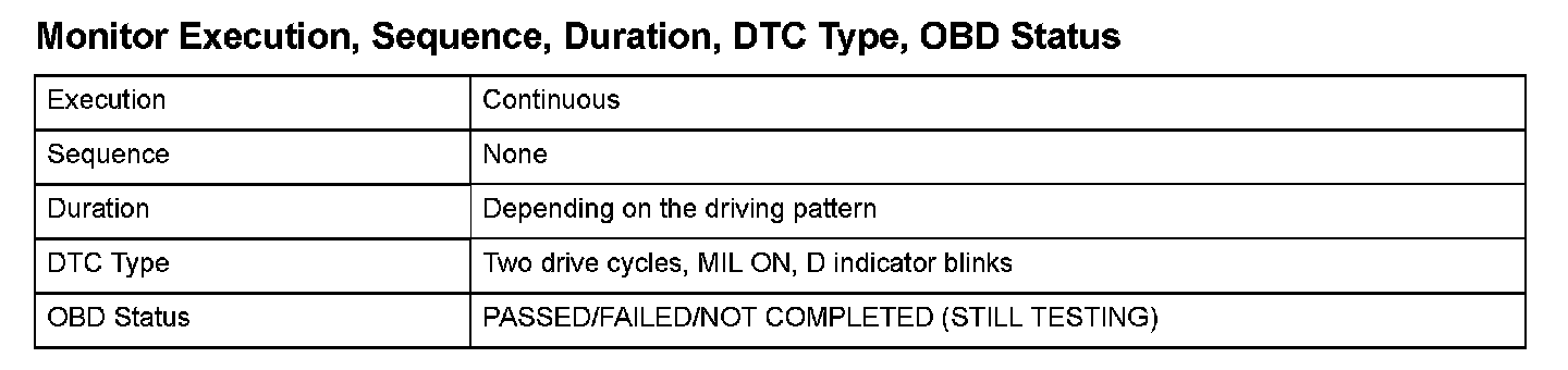 Monitor Execution Sequence, Duration, DTC Type, OBD Status