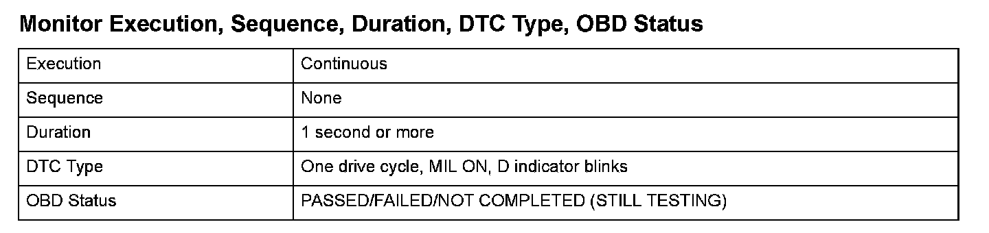 Monitor Execution Sequence, Duration, DTC Type, OBD Status