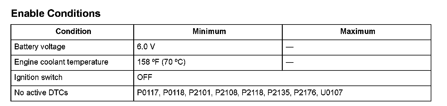 The throttle valve return spring is attached to the throttle valve gear to return the throttle valve to the default position. If the throttle valve does not return to the default position when the throttle actuator control module moves the throttle actuator to the default position from the middle position, a malfunction is detected and the malfunction data is transmitted to the ECM/PCM. When the ECM/PCM receives the malfunction data from the throttle actuator control module, the ECM/PCM detects a malfunction in the throttle valve return spring and a DTC is stored.