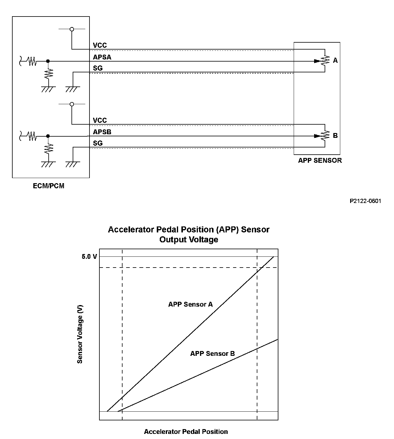 DTC P2138: Accelerator Pedal Position (APP) Sensor A/B (Throttle Position (TP) Sensor D/E) Incorrect Voltage CorrelationGeneral Description