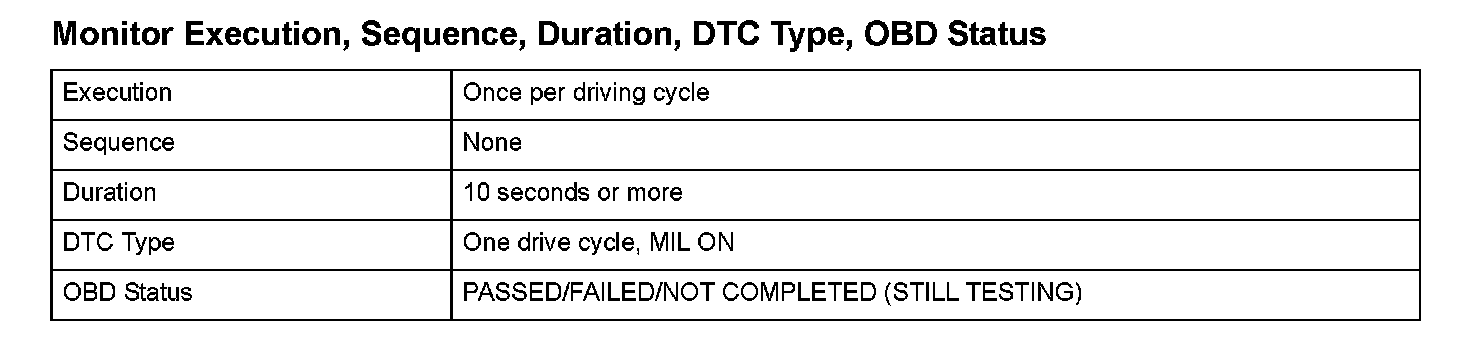 Monitor Execution Sequence, Duration, DTC Type, OBD Status