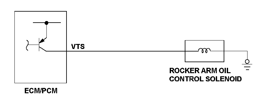 The VTEC system activates the rocker arm oil control solenoid by command from the engine control module (ECM)/ powertrain control module (PCM), and it charges/discharges the hydraulic circuit of the VTEC mechanism that switches valve timing between low and high. If the return signal is ON (high) when the ECM/PCM outputs the OFF (low) signal to the rocker arm oil control solenoid, the ECM/PCM detects a malfunction and a DTC is stored.