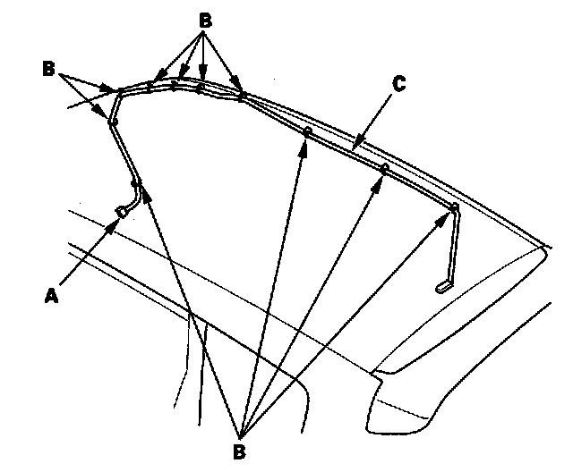 3. Disconnect AM/FM antenna lead/amplifier 3P connector (A) and detach the clips (B), then remove the AM/FM antenna lead/amplifier (C).