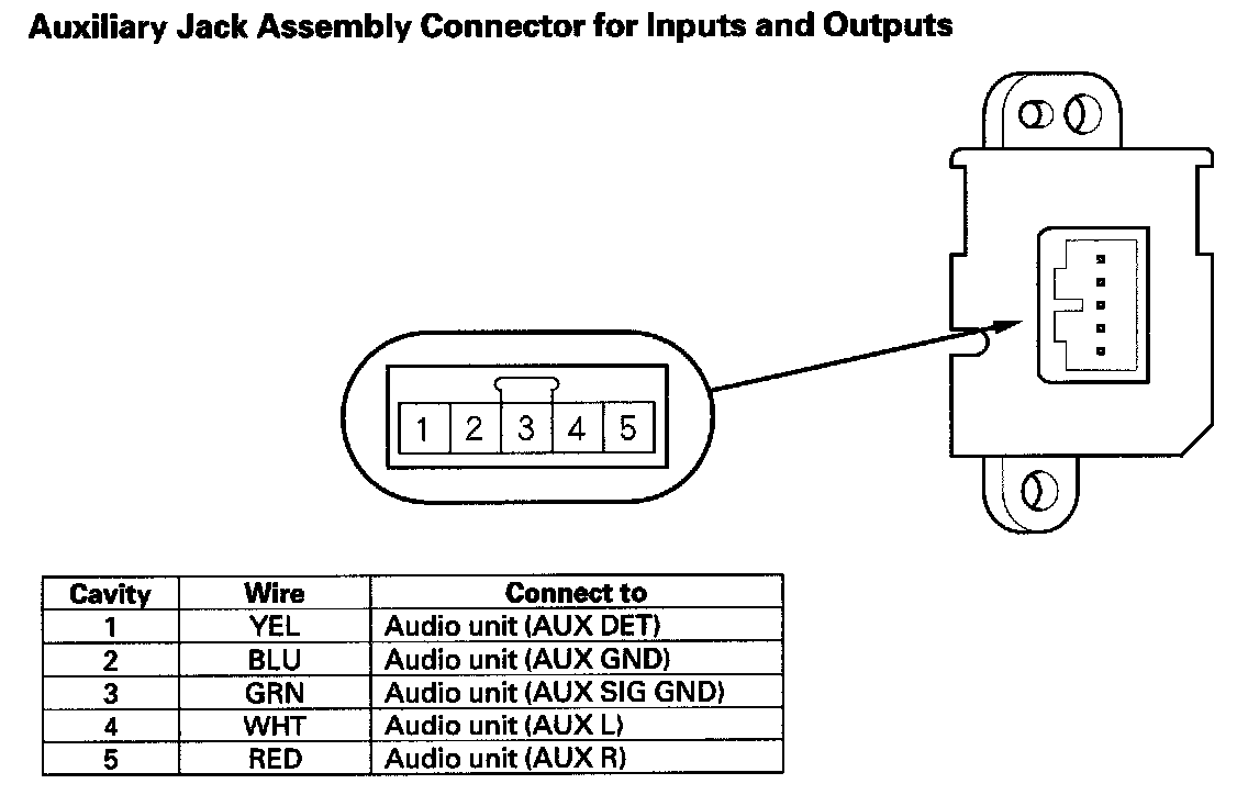 Auxiliry Jack Assembly Connector For Inputs And Outputs: