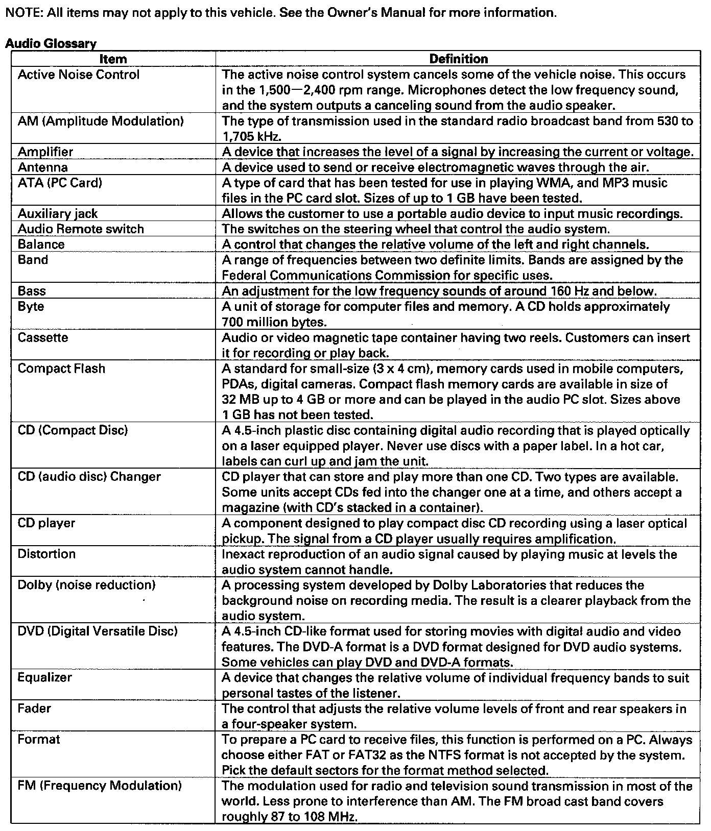 The audio unit has a built-in EEPROM (electrically erasable programmable read-only memory). This memory holds the audio presets (AM/FM radio frequency, sound settings, etc.) even when the battery is disconnected.