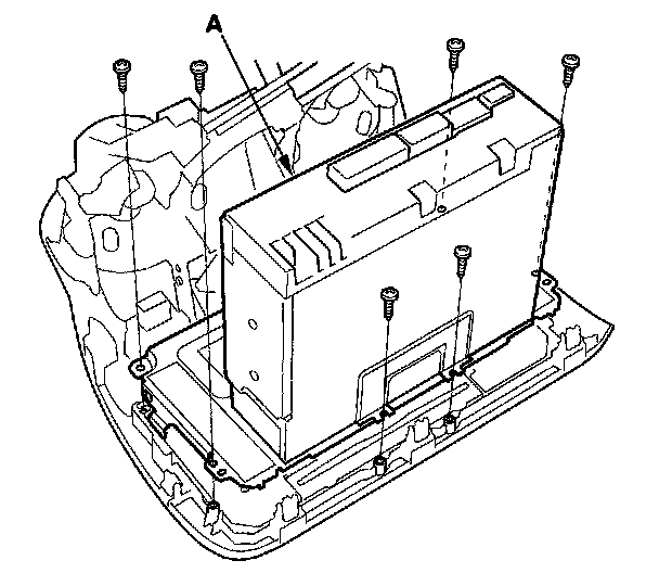 4. Remove the six mounting screws, then remove the audio unit (A).
