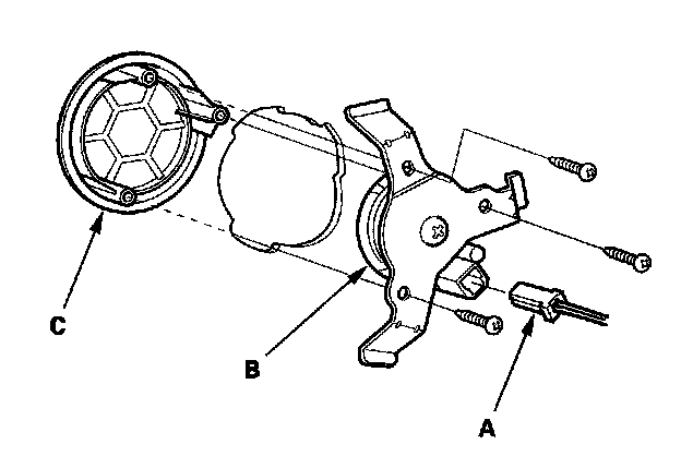 3. Remove the screws, then remove the tweeter and the tweeter grille (C).