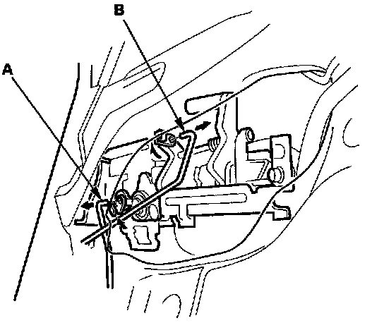 4. Disconnect the cylinder rod (A) and the outer handle rod (B).