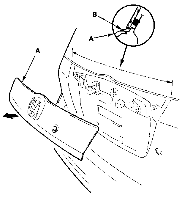 4. Remove the rear license trim (A). Take care not to scratch the tailgate.