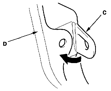 - Before installing the clips of the door upper and lower portions, install the front fender fairing to the front fender (D) properly as shown.