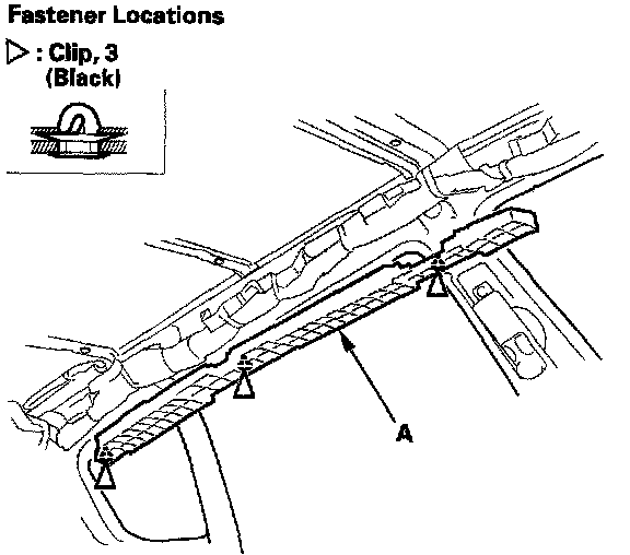 5. If necessary, detach the clips, and remove the roof upper pad (A).
