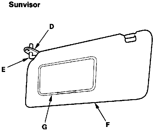 - Any bends or cracks in the sunvisor stay shaft (E)