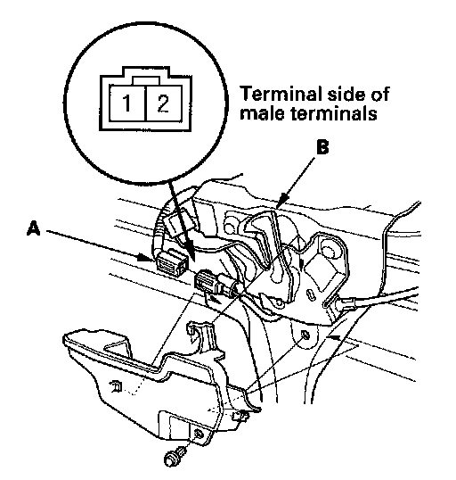 - There should be continuity between the No. 1 and No. 2 terminals when the hood is opened (latch released).