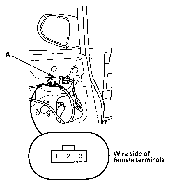 2. Disconnect the 3P connector (A) from the power mirror actuator