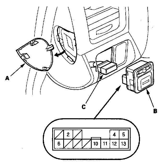 3. Disconnect the 13P connector (C) from the switch.