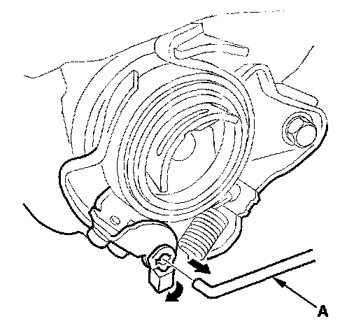 6. Passenger's seat: Disconnect the rear seat access rod (A).