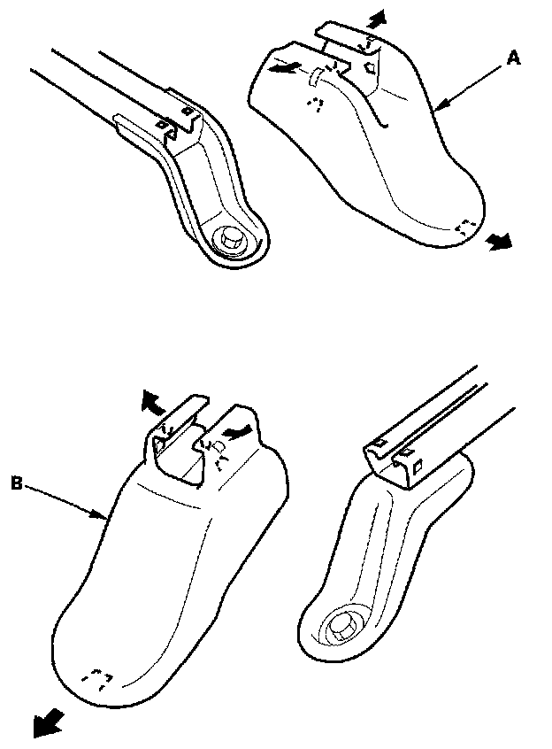 3. Remove the front inner seat track end cover (A) and front outer seat track end cover (B) from the front of both seat tracks.