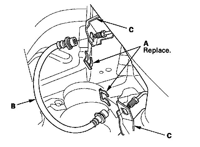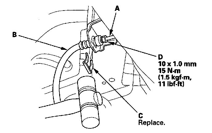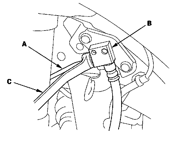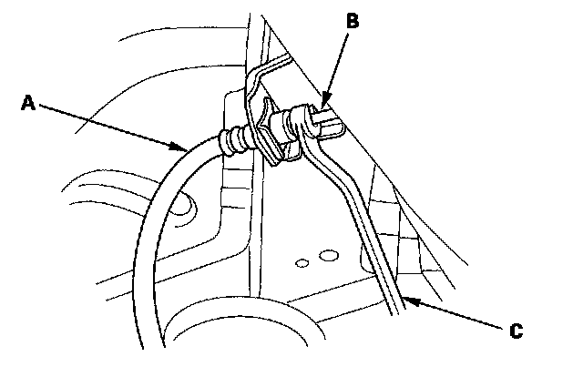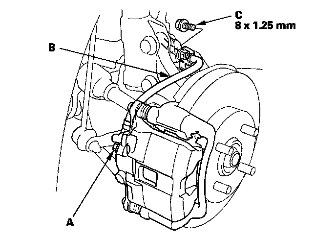 6. Remove the brake hose mounting bolt (C), then remove the brake hose.