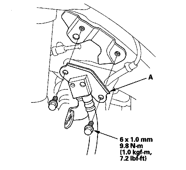 3. Install the brake hose mounting bracket A on the body. Do not twist the brake hose.