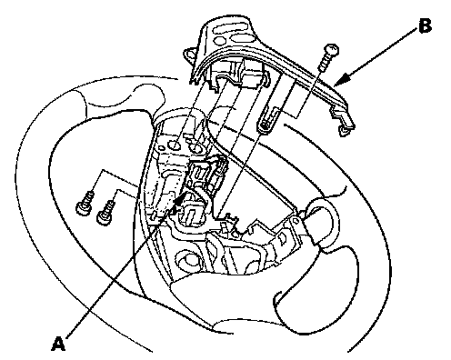 2. Remove the three screws, then disconnect the connector (A), and remove the cruise control combination switch (B).