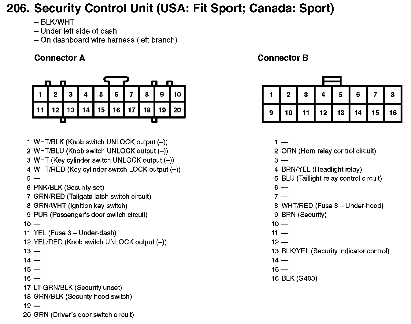 206. Security Control Unit (USA: Fit Sport; Canada: Sport):