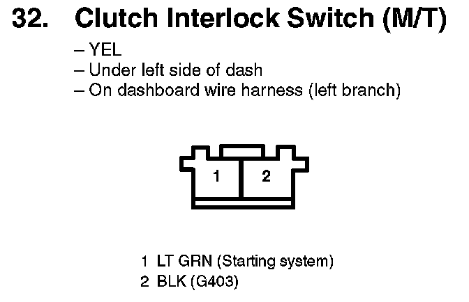 32. Clutch Interlock Switch (M/T):