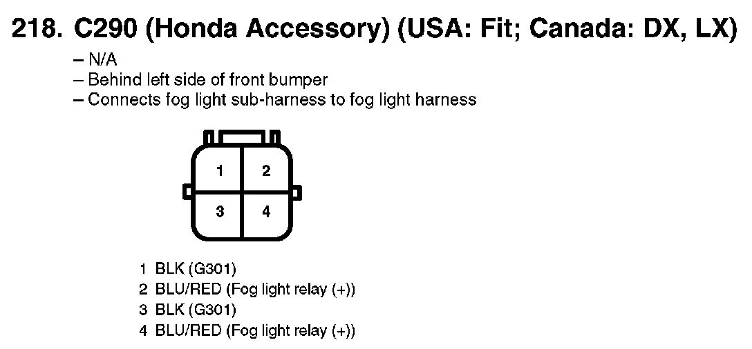 218. C290 (Honda Accessory) (USA: Fit; Canada: DX, LX):