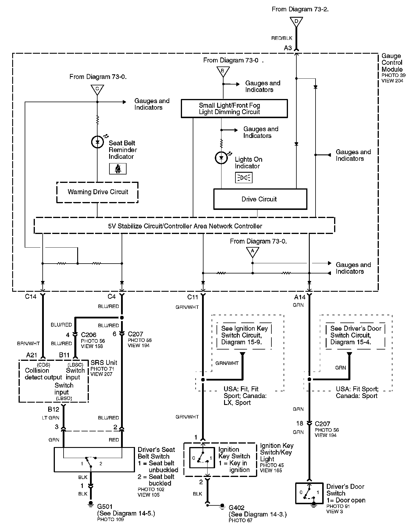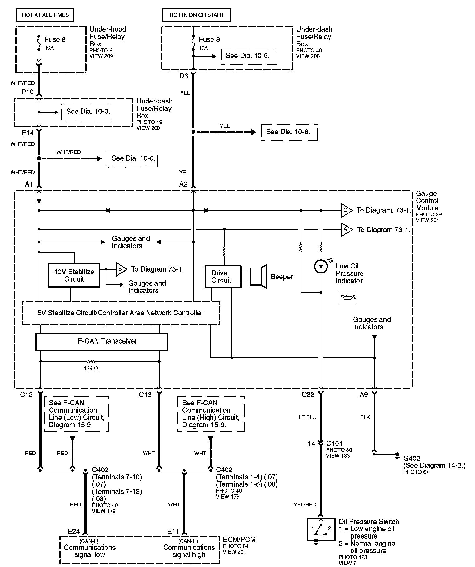 Diagram Set 73 (Reminder Systems and Low Oil Pressure Indicator)