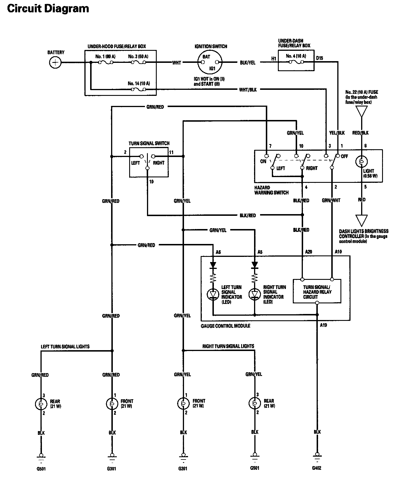 Turn Signal/Hazard Warning Lights Circuit Diagram: