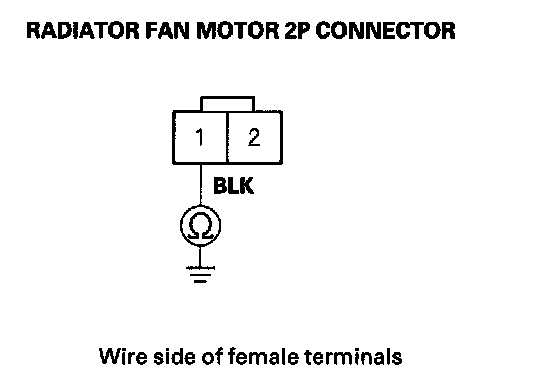 7. Check for continuity between the radiator fan motor 2P connector terminal No. 1 and body ground.