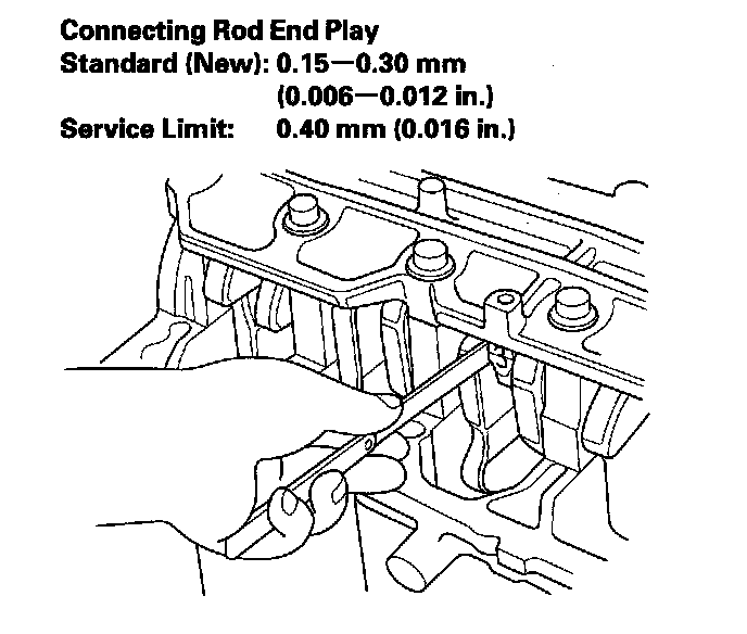 2. Measure the connecting rod end play with a feeler gauge between the connecting rod and the crankshaft.