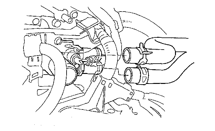 38. Install the upper radiator hose (A) and the lower radiator hose (B).